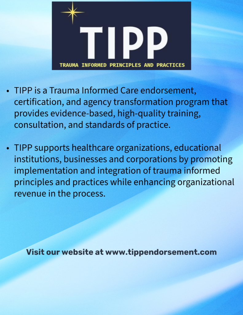- TIPP supports healthcare organizations, educational institutions, businesses and corporations by promoting implementation and integration of trauma informed principles and practices while enhancing organizational revenue in the process.